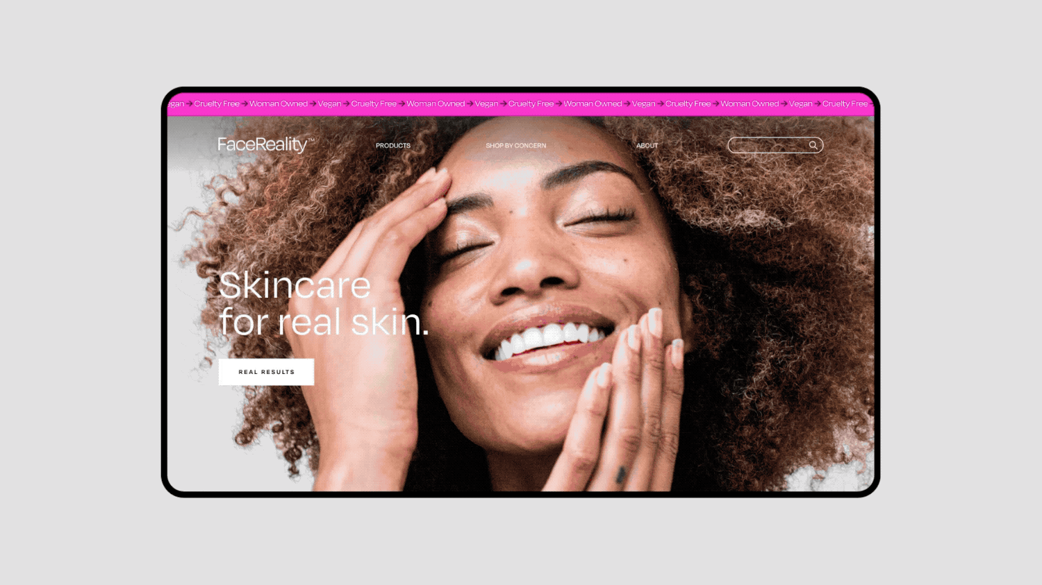 Complete rebrand of Face Reality, a specialized skincare line for acne-prone skin.