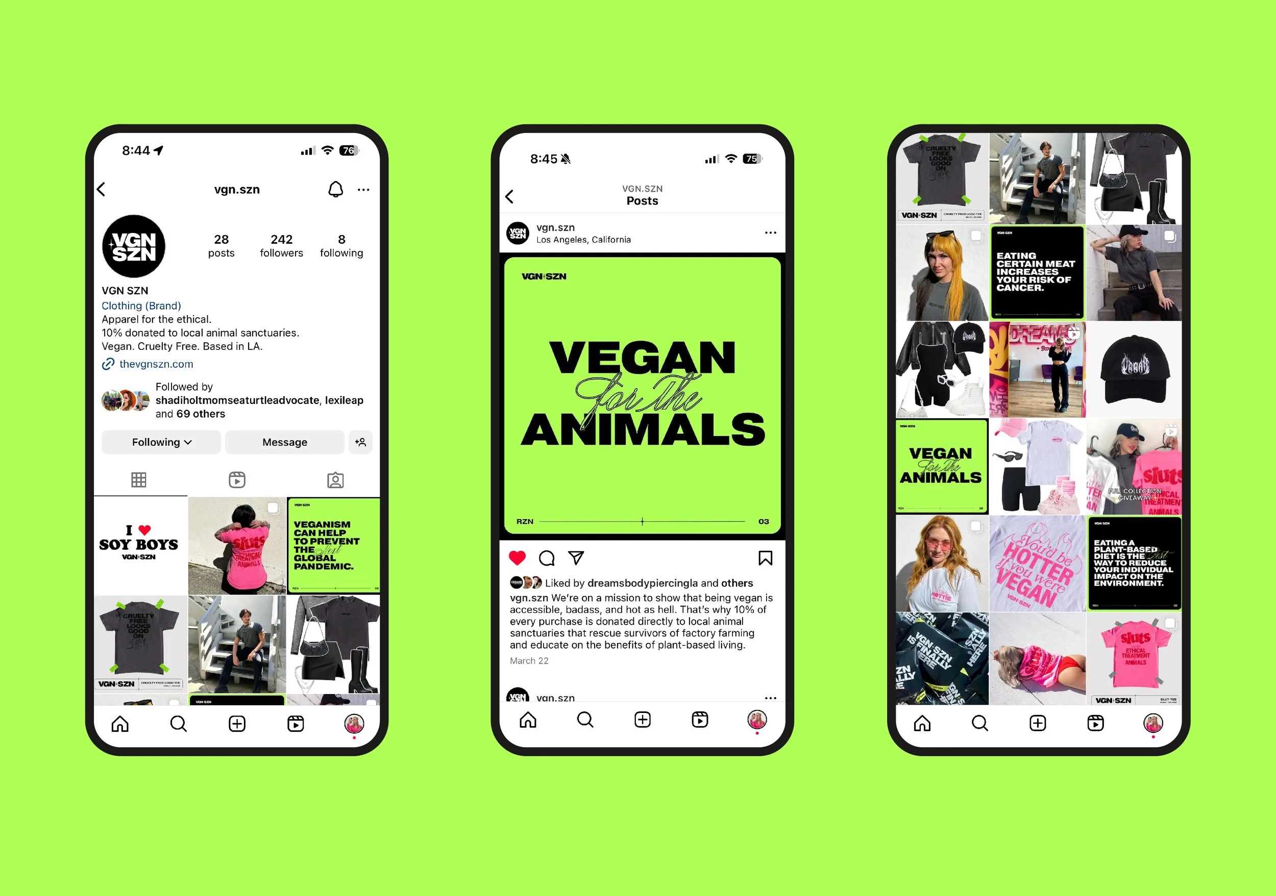 I created a vegan streetwear apparel brand and donate 10% to local animal sanctuaries because I believe there’s nothing hotter than caring about animal rights. You can find it online at thevgnszn.com.